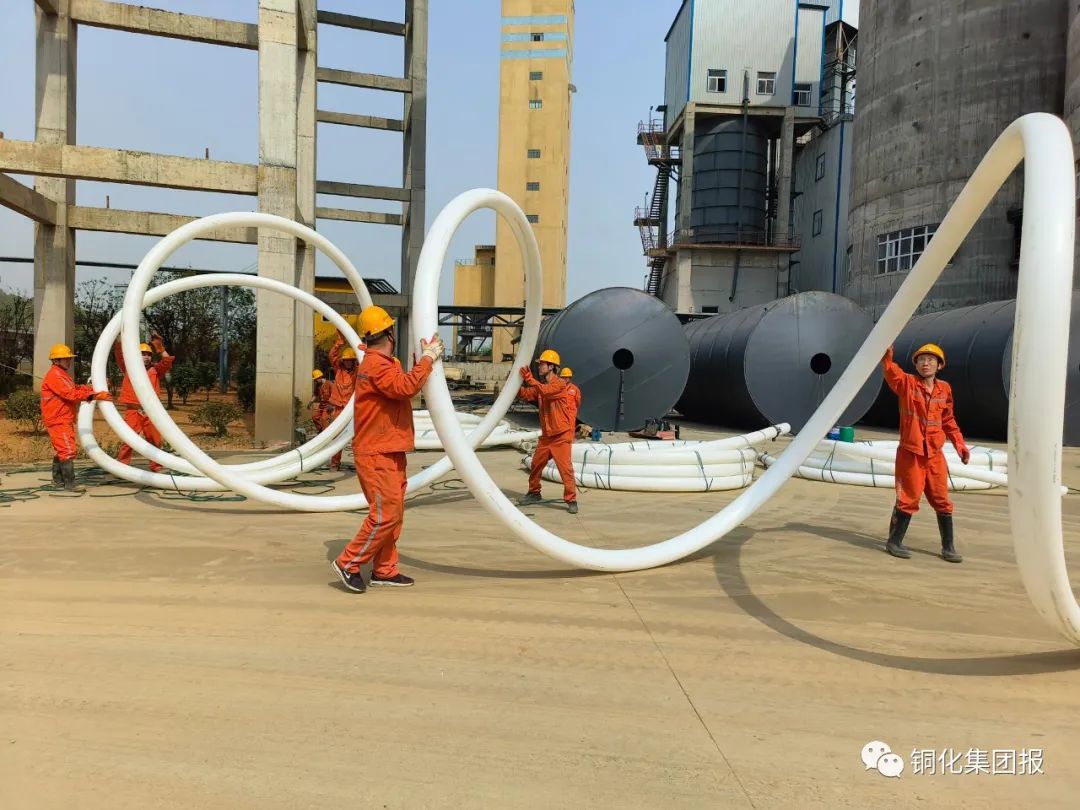 在施工現(xiàn)場(chǎng),工人師傅們或肩扛,或手拉,全力完成管道鋪設(shè)任務(wù)。充填管道盤起來時(shí)直徑較大,運(yùn)輸起來很麻煩;管道壁較厚,捋直也是對(duì)技巧、體力和耐力的考驗(yàn)。師傅們將洗潔精涂在內(nèi)接外壁上進(jìn)行潤(rùn)滑,一絲一絲將內(nèi)接塞入管道內(nèi)??ü?、拉桿等每一道工序都需要細(xì)致檢查,才能確保接好的管道投用后無“跑、冒、滴、漏”現(xiàn)象。在大家的共同努力下,三百多米的充填管道很快鋪設(shè)完畢,為后續(xù)負(fù)36米平臺(tái)新建水泵房的邊坡支護(hù)及采坑生態(tài)修復(fù)創(chuàng)造了條件。